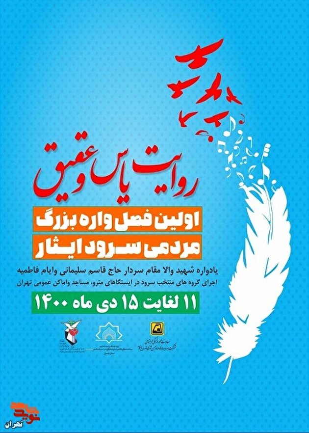بنیاد شهید و امور ایثارگران تهران بزرگ، در راستای ترویج فرهنگ ایثار و شهادت و در آستانه شهادت سردار حاج قاسم سلیمانی، فصل واره بزرگ مردمی سرود ایثار را برگزار می‌کند. در ادامه پوستر این برنامه را مشاهده می‌کنید.